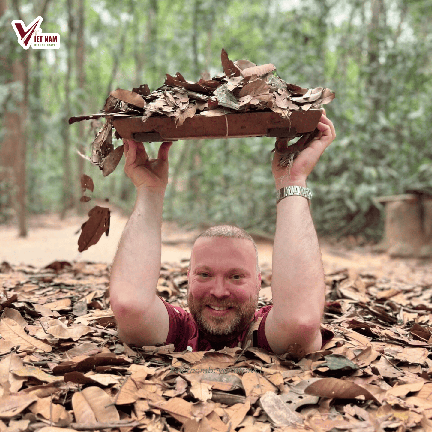 Explore Cu Chi Tunnels, walk underground, see smokeless kitchens, taste wartime food